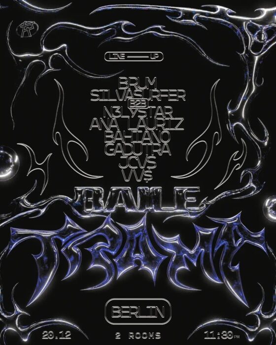 It’s the last TRAMA of the year, and what a year it’s been! To close things out in Berlin in the best way, we are back to Lark & Fitzroy, taking over both clubs with heavy-hitting basslines and special guests who have been making waves in the European scene! 2 ROOMS, +8 DJs bringing fun and energy to the dancefloor. A final joy before the year resets :: join us! For this special night, straight from Florianópolis, BRUM lands with her intense, high-voltage sets for a powerful Berlin debut. From Lisbon, ANA LAURIZ brings her signature heavy hitting rhythms, while BAHIANO delivers explosive automotive inspired selections. Completing the lineup, local talents GADUTRA, N3LYSTAR, SILVASURFER, and VV$ take over with their distinctive sounds and shaping the last TRAMA of the year! // TRAMA is a Brazilian plural movement focused on promoting cultural and musical connections between Brazil and the world, especially in Europe. With an inclusive proposal, the project brings together prominent guests, rising artists and local DJs, creating a fusion between the power of Brazilian music and other rhythms. The movement strengthens the scene, connecting cultures and bringing the best of our sound to each event (“Baile”). *We aim for an environment to feel safe, comfortable and empowered. No form of intolerance will be accepted here.