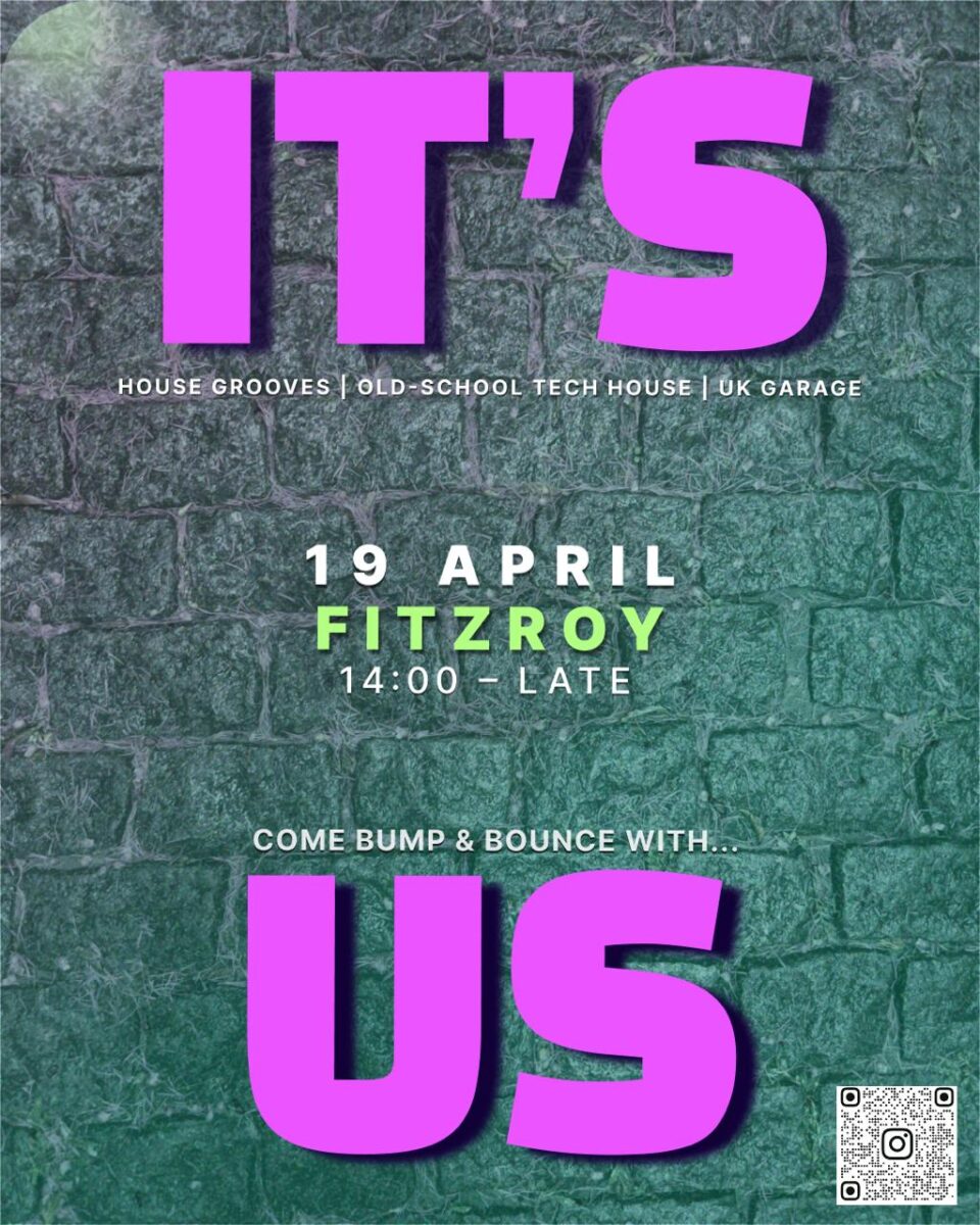 Bouncy and cheeky vibes to end the weekend? We got you. It’s Us arrives at the shores of Fitzroy. This time it’s a day rave, so expect some early summer vibes. As always we have some extra treats in our sleeves. And of course we still love chunky, groovy House and UKG.